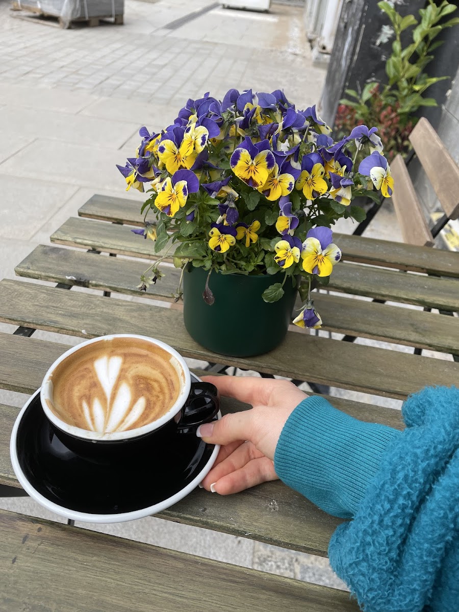 As you step inside, you'll be embraced by a cozy ambiance that invites you to sit back, relax, and savor the moment. The café's layout is a perfect blend of quirky charm and modern sensibilities, with ample seating both inside and on its inviting outdoor patio. Many patrons recommend basking in the sunlight outside, especially during the golden autumn days when you can savor your favorite brew while soaking in the scenic beauty of the street.